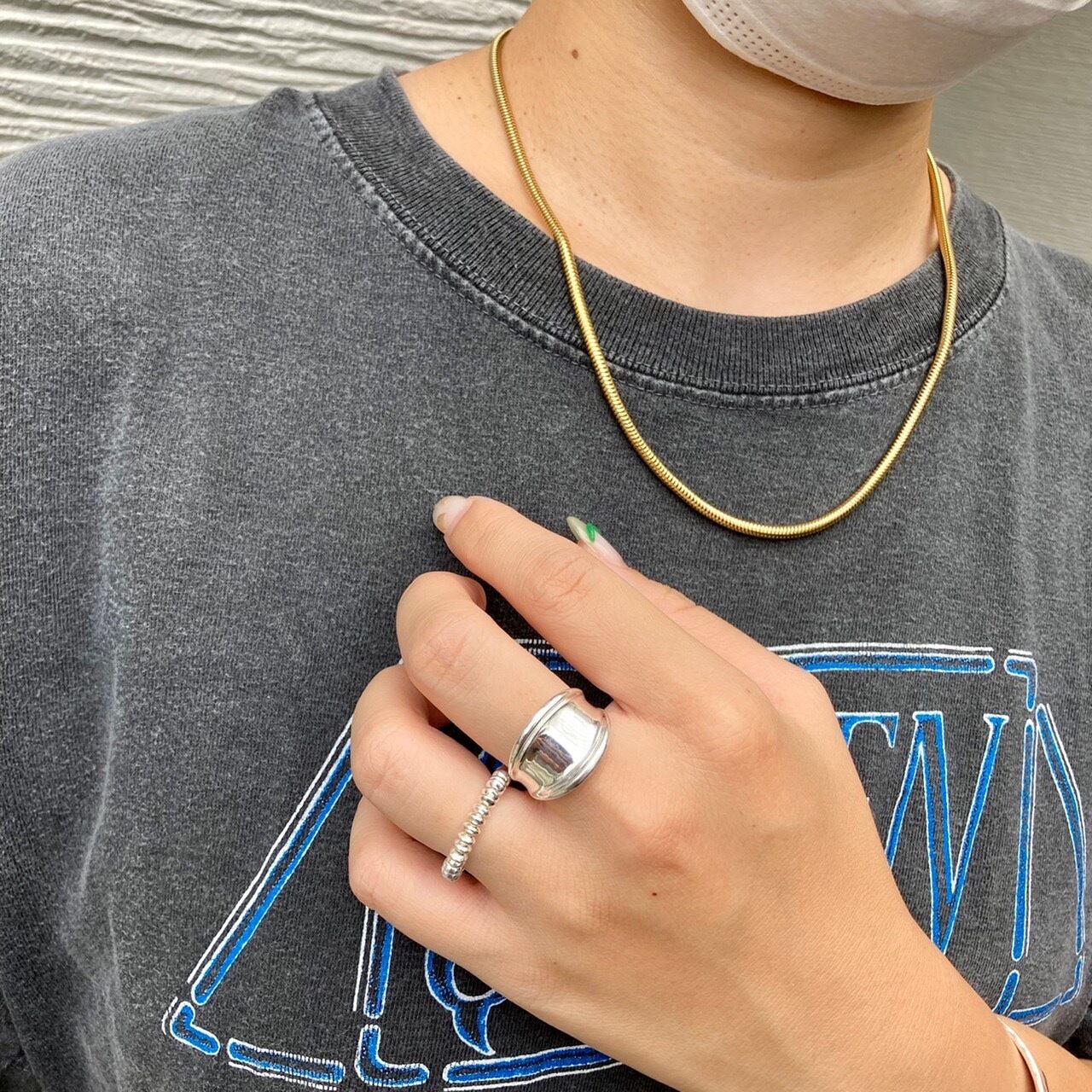細いネックレスとの重ね付けしてもオシャレなアイテムです。